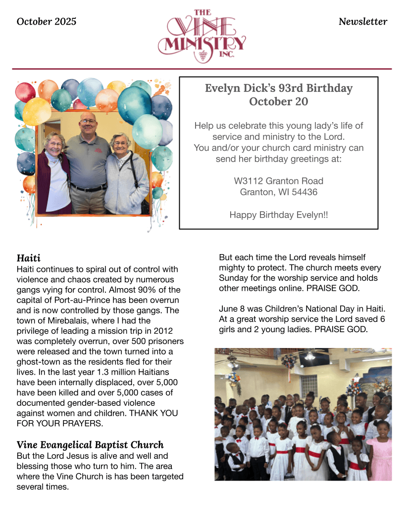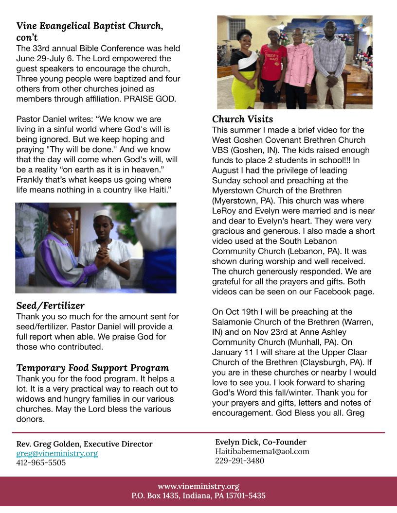 or donate to the mission of Vine Ministry!